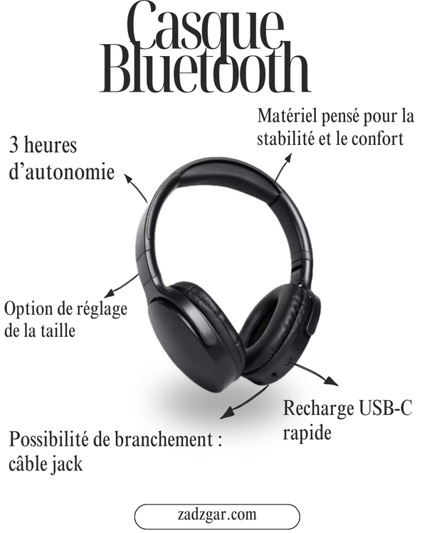 Casque Bluetooth Élégant avec Garantie 14 Jours