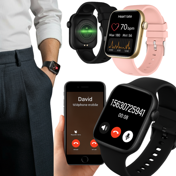 En plus d'être connecté à votre téléphone, la montre vous accompagne dans vos activités sportives grâce à ses modes multiples. Elle suit votre rythme cardiaque, votre tension artérielle, et synchronise tout sur votre application pour un suivi santé détaillé et personnalisé.